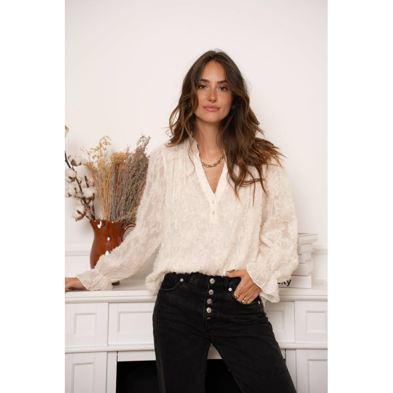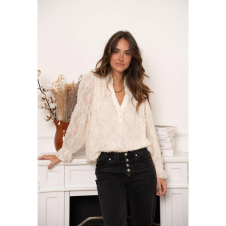 Blouse écru avec doublure et détails en relief