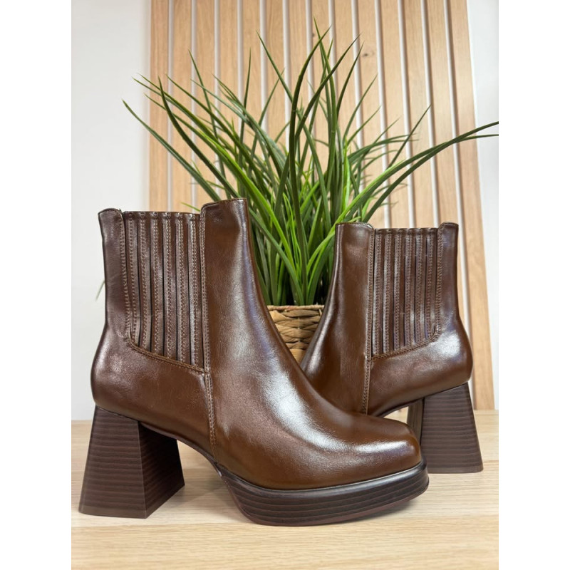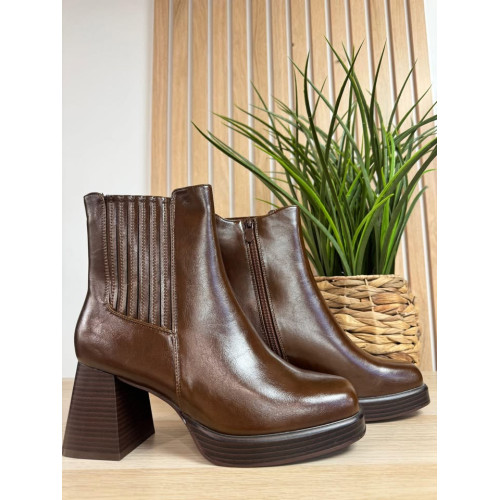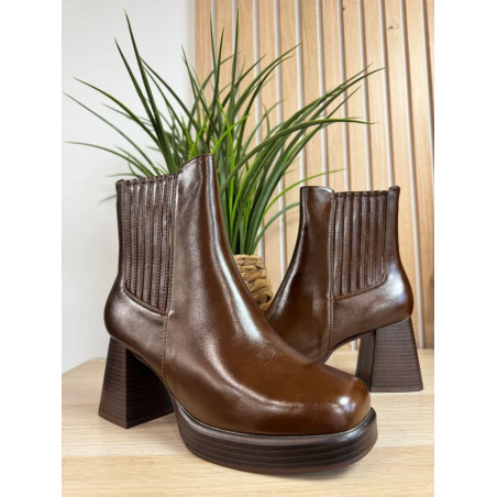 Bottines à talon carré de 8.5cm, effet brillant avec fermeture éclair à l'intérieur