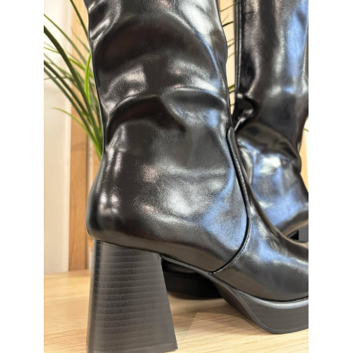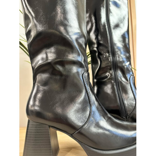 Bottes à talon carré de 8.5cm, qui arrive en dessous du genou