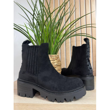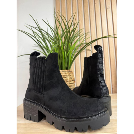 Bottines effet daim avec détails à l'arrière léopard