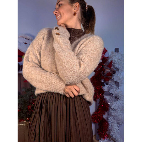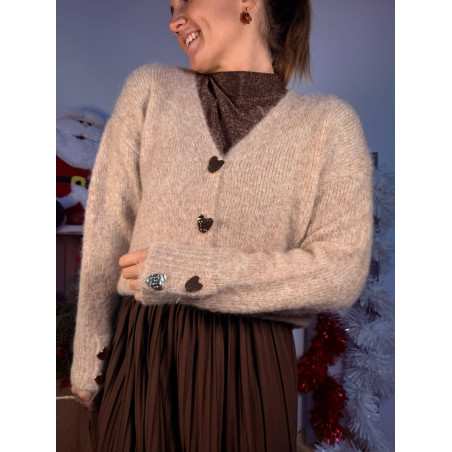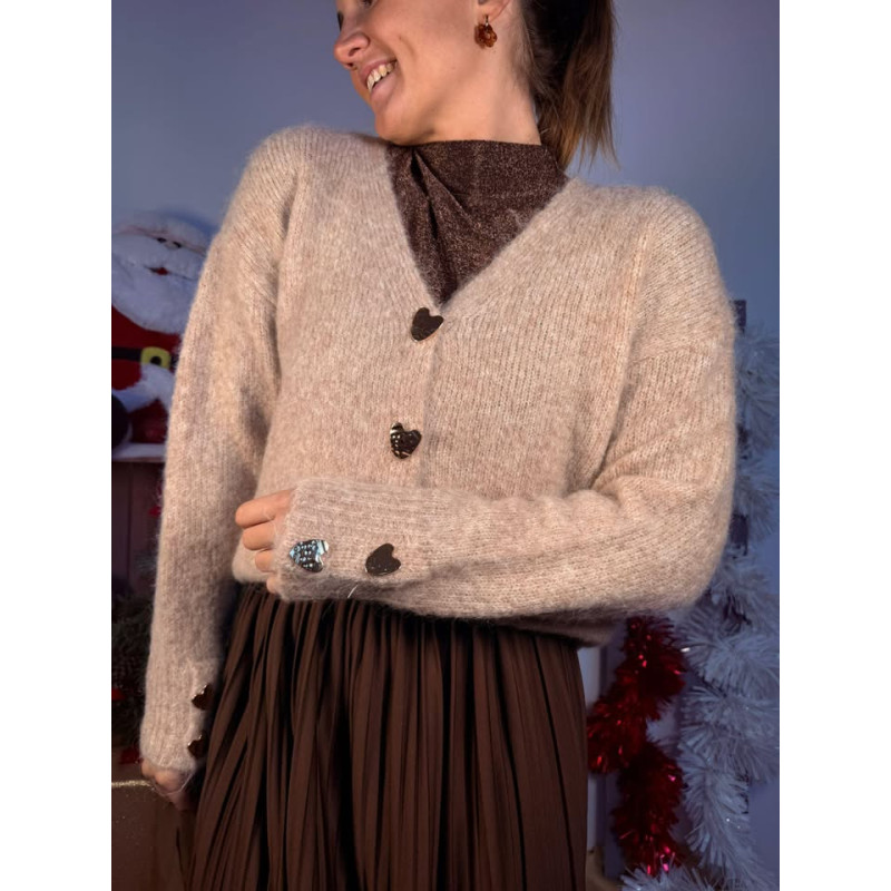 Gilet beige avec boutons dorés en forme de coeur aux manches et sur le devant