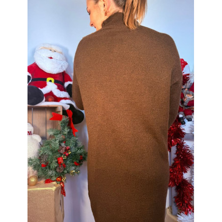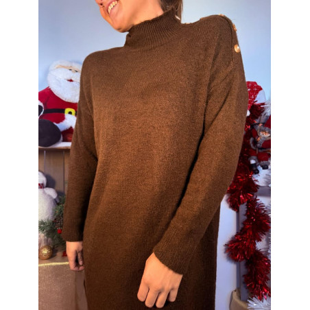Robe pull chocolat avec boutons sur le côté d'épaule gauche