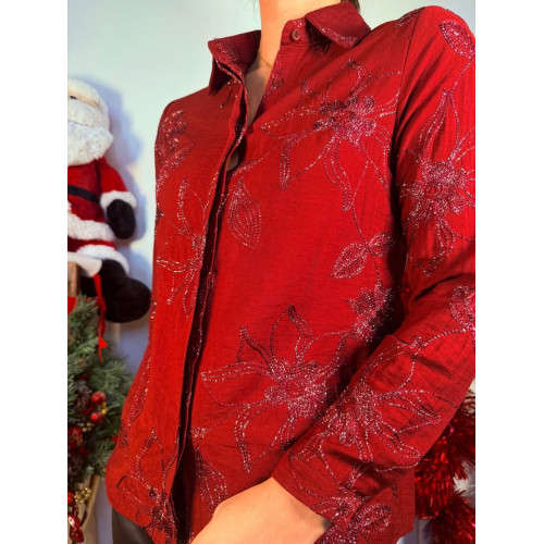 Chemisier bordeaux avec broderies brillantes