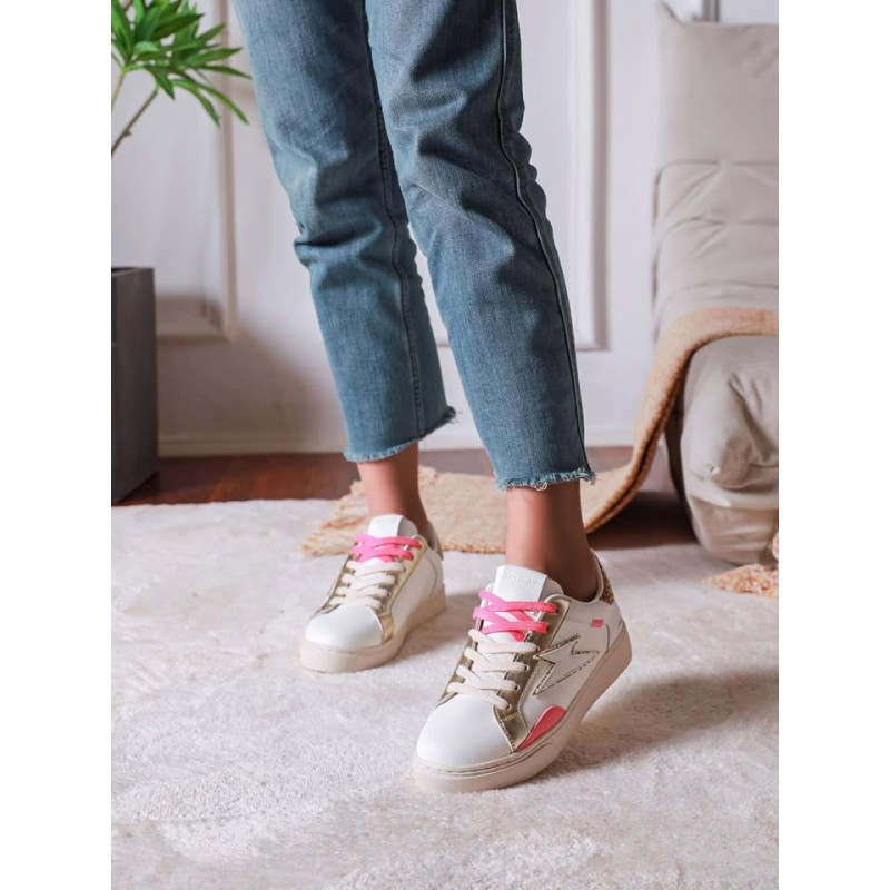 Basket avec lacets rose et blanc